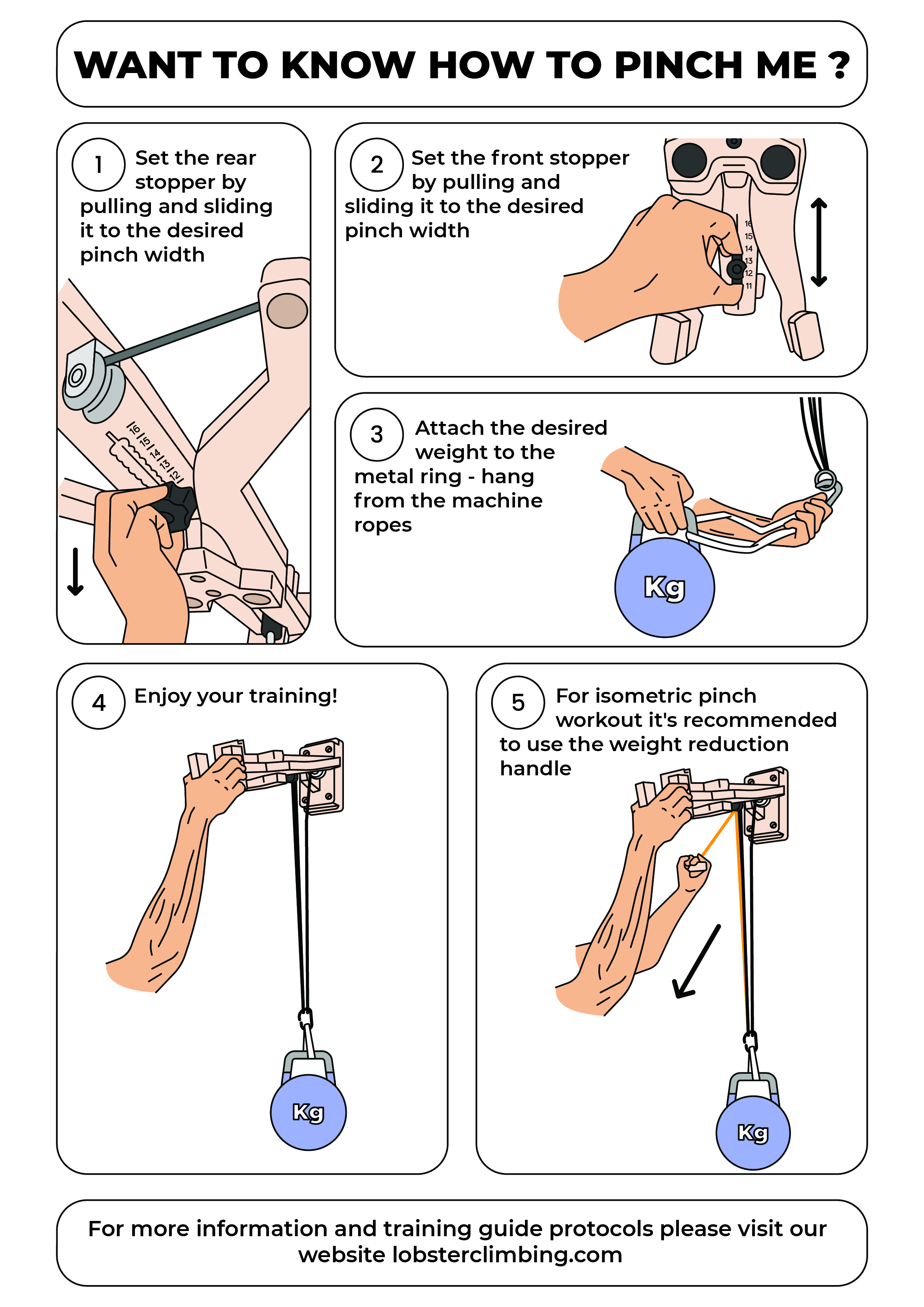 Adjustable Pinch Width - Pinch width varies between 6cm to 12cm, depends on your palm size or your training preferences